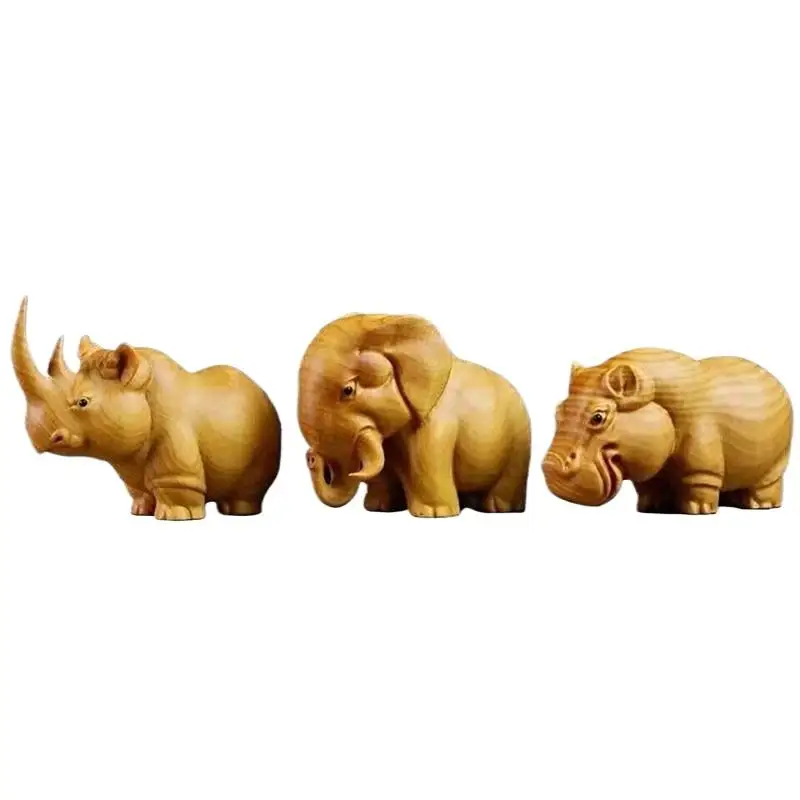 💖Wooden Carved African Trio:Rhinoceros,Hippopotamus,And Elephant Figurines,Creative Car and Home Decor Crafts